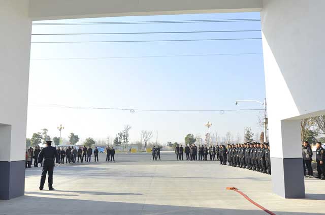 雖然室外氣溫格外寒冷,但這里卻充滿了春天的氣息。上午9時(shí)50分,4名禮儀保安抬著一塊披著紅綢的標(biāo)牌, 邁著整齊的步伐走向公司大門,9時(shí)58分,江蘇省淮安市保安服務(wù)總公司標(biāo)牌緩緩地、平穩(wěn)地掛了起來(lái),現(xiàn)場(chǎng)響起陣陣鞭炮聲和熱烈的掌聲,大家共同為總公司新址掛牌而歡欣鼓舞。