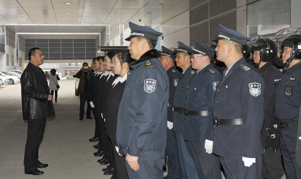 月異日新雞報(bào)曉,年祥歲吉犬開門。在聲聲的鞭炮聲中,狗年悄然而至,2月16日大年初一早晨7時(shí)20分,總經(jīng)理婁伯翱、副總經(jīng)理王克、徐文剛以及公司黨總支委員一起慰問了整裝待發(fā)的武裝押運(yùn)員。