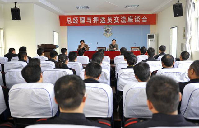 11月27日上午,總公司總經(jīng)理與押運(yùn)員交流座談會(huì)在押運(yùn)中心三樓會(huì)議室舉行。總經(jīng)理婁伯翱在會(huì)上針對(duì)押運(yùn)隊(duì)伍中隊(duì)員所提出來(lái)的問(wèn)題進(jìn)行了分類解答和說(shuō)明,并對(duì)會(huì)議中與會(huì)人員現(xiàn)場(chǎng)提出的有關(guān)問(wèn)題面對(duì)面進(jìn)行了溝通交流。