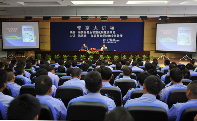 2012年5月19日,江蘇警官學(xué)院教授沈惠章在淮安警官學(xué)院以“保安服務(wù)業(yè)管理機(jī)制建設(shè)研究”為內(nèi)容進(jìn)行了一天的講座,公司保安隊(duì)伍和有關(guān)部門骨干近200人聆聽了講座,并針對(duì)保安業(yè)情況與沈教授進(jìn)行了交流和溝通。