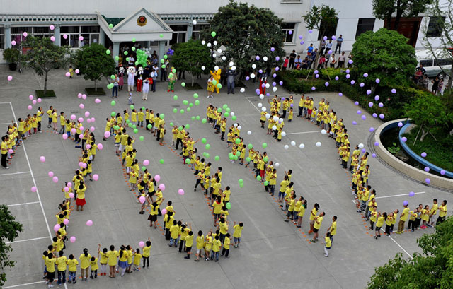 6月3日下午,總公司院內(nèi),400余名小朋友排成2012字樣并放飛氣球,共同歡度剛剛過去的六一兒童節(jié)。