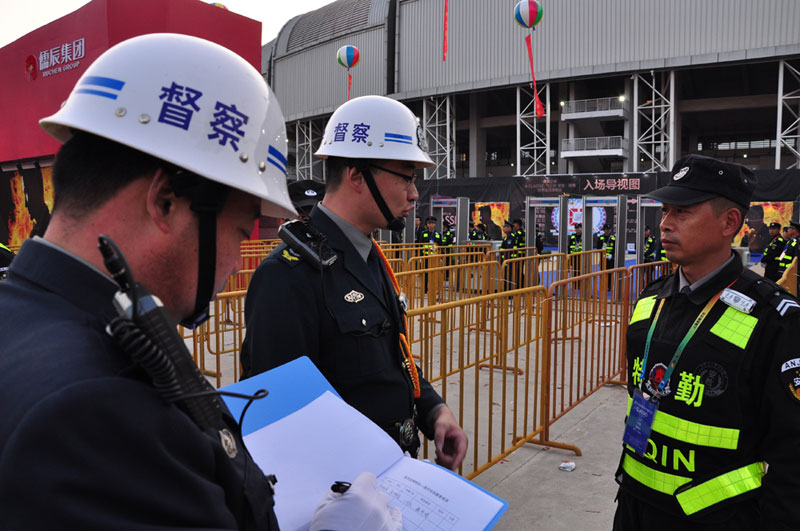 為做好安保工作,11月2日上午,人防中心專門組織參加臨沂安保人員進行專項培訓。3日上午7:00集合出發(fā),提前到達臨沂大學,按照承辦方要求,現(xiàn)場搭建300米防爆墻,10個預檢票口通道,承擔了25000名觀眾入場的安檢、檢票通道的秩序維護等安保任務(wù)。