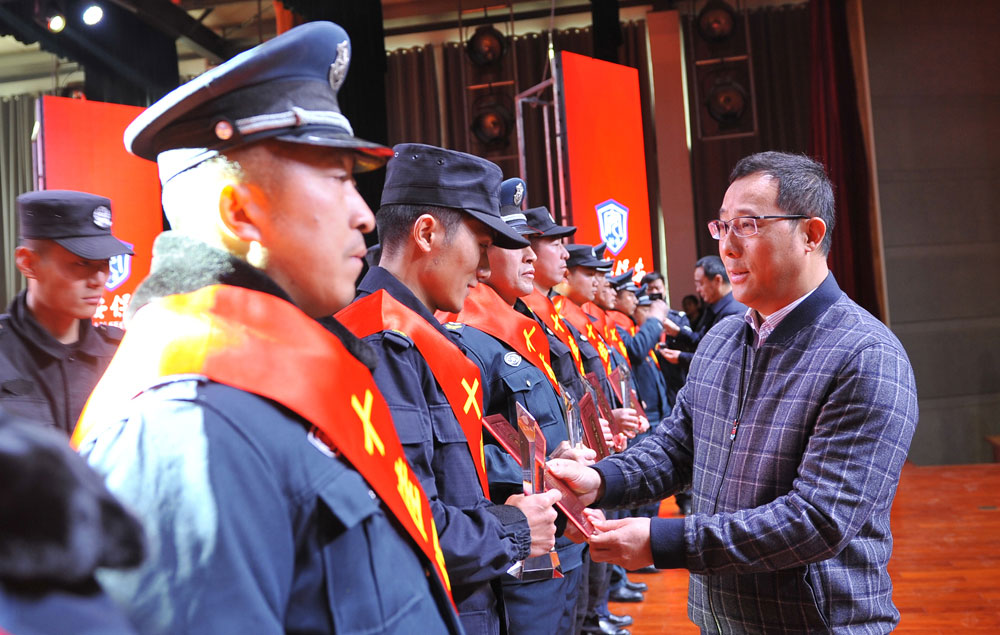2019年3月3日上午,總公司在二樓報告廳隆重召開2018年度工作總結(jié)表彰大會。國聯(lián)集團湯正明董事長、辦公室孫國庭主任出席會議;總公司黨總支成員和各部門負(fù)責(zé)人;市區(qū)押運員和駐縣押運員代表;保安分隊長以上骨干和保安員代表;駐外分公司駐外執(zhí)勤項目部負(fù)責(zé)人和高級安保專業(yè)班學(xué)員等共900余名員工參加了會議。