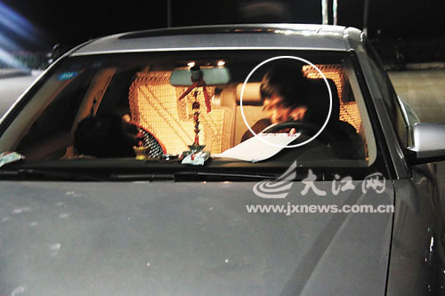 昨日傍晚6時20分許,記者來到華東交大北門校區(qū)內(nèi),只見一輛奧迪A4小車停在大門旁,駕駛位上一名男子邊抽煙邊打著電話,副駕駛位上的女學(xué)生則趴著,遮住了臉。