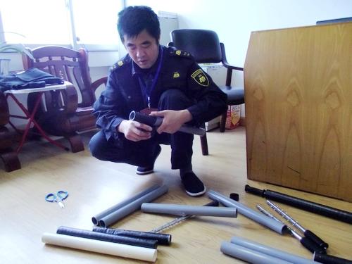 寧波安邦護(hù)衛(wèi)有限公司象山大隊(duì)經(jīng)檢查部分防彈衣帶子失去粘性,狼牙棒外殼出現(xiàn)破損,影響了押運(yùn)形象和存在安全隱患。鑒于這種情況,大隊(duì)不等不靠,積極開動(dòng)腦筋,4月7日,自購了PVC管、電工膠布等材料,隊(duì)員利用午休時(shí)間,分工協(xié)作,動(dòng)手修補(bǔ)了防彈衣15件,制作了狼牙棒套20個(gè),有效降低了公司運(yùn)行成本,提高了隊(duì)員愛護(hù)裝備意識(shí)。