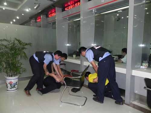 為進(jìn)一步做好押運(yùn)工作,6月30日,德州市在市區(qū)某工商銀行現(xiàn)場(chǎng)開展反搶劫模擬演練。按照方案部署,兩名押運(yùn)隊(duì)員扮演的犯罪分子來到業(yè)務(wù)窗口說要取10萬現(xiàn)金,隨后拿出事先準(zhǔn)備好的仿真***和炸藥包逼工作人員把錢交出來,隨后三名押運(yùn)隊(duì)員上前把“犯罪分子”捉拿歸案。此時(shí)現(xiàn)場(chǎng)響起熱烈的掌聲,演練圓滿結(jié)束。