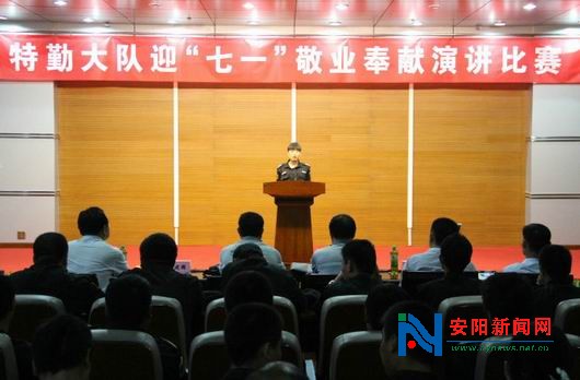 安陽新聞網(wǎng)訊 為慶祝黨的91歲生日,進(jìn)一步激發(fā)隊(duì)員對(duì)黨的熾熱情感,激發(fā)他們對(duì)黨忠誠(chéng)、為黨奉獻(xiàn)、聽黨指揮的黨性意識(shí)。6月26日晚,安陽市保安公司駐中國(guó)文字博物館特勤大隊(duì)在中國(guó)文字博物館會(huì)議室舉辦了迎“七·一” 敬業(yè)奉獻(xiàn)演講比賽。
