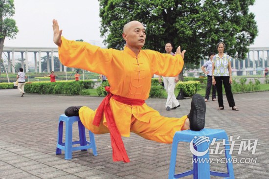 “農(nóng)民工組合”中的武者張中心來自河南孟州,體魄結(jié)實,剃著光頭,頗有點少林寺武僧的范兒。張中心告訴記者,自己出生在有著“武術(shù)之鄉(xiāng)”之稱的孟州化工鎮(zhèn),從小就對武術(shù)癡迷。與王文正一樣,張中心同樣從小家境貧寒,早年父親得了精神病,家里沒了頂梁柱,張中心也是小學(xué)沒畢業(yè)便輟學(xué)了,兄妹三人都是母親一人拉扯大。由于父親精神病發(fā)作,出去惹了不少事,遭到了鄰居的不解和謾罵,兄妹幾個也常被欺負,于是張中心暗下決心,學(xué)好武術(shù),保護家人不被欺負。說到這,張中心覺得自己走上習(xí)武之路的初衷有些偏頗,“習(xí)武之人不可為一己之私,以怨報怨,有違武術(shù)之道,所以現(xiàn)在打算免費傳授一些武術(shù)給大家,當(dāng)做健身之道?!?/SPAN>