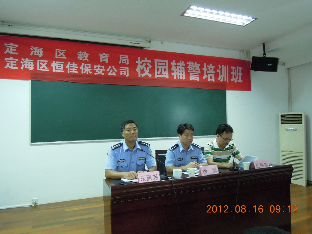 8月16日上午,定海區(qū)恒佳保安公司、區(qū)教育局校園輔警(保安隊(duì)長)共115名培訓(xùn)班開班儀式在舟山人民警察學(xué)校舉行,分局副局長徐洲、區(qū)教育局副局長應(yīng)朋志作開訓(xùn)動員。本次培訓(xùn)為期3天,實(shí)行軍事化封閉式管理,主要學(xué)習(xí)各種法律知識、業(yè)務(wù)技能及軍體訓(xùn)練。通過此次培訓(xùn),旨在進(jìn)步一增強(qiáng)校園輔警的安全意識,努力提高校園輔警的安保技能。