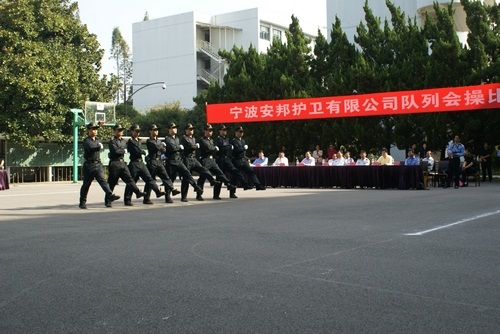 為進(jìn)一步增強(qiáng)員工的集體榮譽(yù)感和團(tuán)隊(duì)凝聚力,加強(qiáng)隊(duì)伍建設(shè),展示安邦風(fēng)采,根據(jù)《安邦文化主題教育活動(dòng)實(shí)施方案》安排,10月16日上午,寧波安邦護(hù)衛(wèi)有限公司在甬江職高籃球場(chǎng)舉行隊(duì)列會(huì)操比賽。并邀請(qǐng)寧波市公安局經(jīng)文保支隊(duì)政委顧致中、治安支隊(duì)副支隊(duì)長(zhǎng)林天海,市工商銀行、農(nóng)業(yè)銀行、中國(guó)銀行、建設(shè)銀行、寧波銀行等5家大行保衛(wèi)部領(lǐng)導(dǎo)擔(dān)任嘉賓評(píng)委。比賽中,10支參賽隊(duì)在各自指揮員的帶領(lǐng)下,精神飽滿、口號(hào)嘹亮、整齊劃一,先后完成了稍息、立正、跨立、敬禮、停止間轉(zhuǎn)法、步法與立定等內(nèi)容的會(huì)操課目,展現(xiàn)了公司員工拼搏進(jìn)取的優(yōu)秀風(fēng)貌。經(jīng)現(xiàn)場(chǎng)打分,最終余姚大隊(duì)、工行大隊(duì)、象山大隊(duì)分別獲得比賽的前三名。
