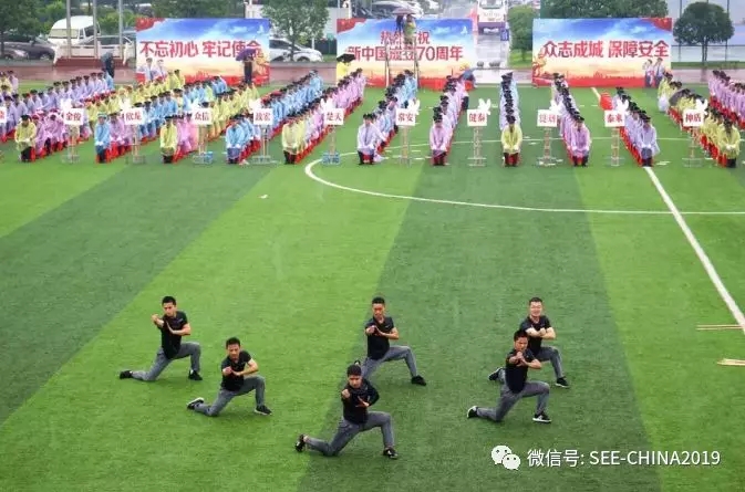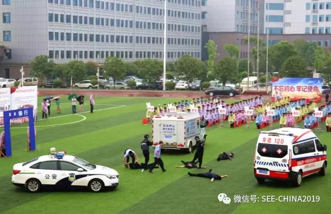 在隨后進行的分列式、隊列、武術(shù)表演、處置醫(yī)療突發(fā)事件、交通指揮操、校園突發(fā)事件處置演練、一招制敵、消防演練、犯罪嫌疑人在自助銀行存取款機上安裝偽讀卡器和隱形攝像機應急處置演練、擒敵拳配套、倒功、防搶演練等項目演練過程中,節(jié)奏緊湊、動作流暢、搏斗精彩,贏得了全場陣陣喝彩和掌聲。