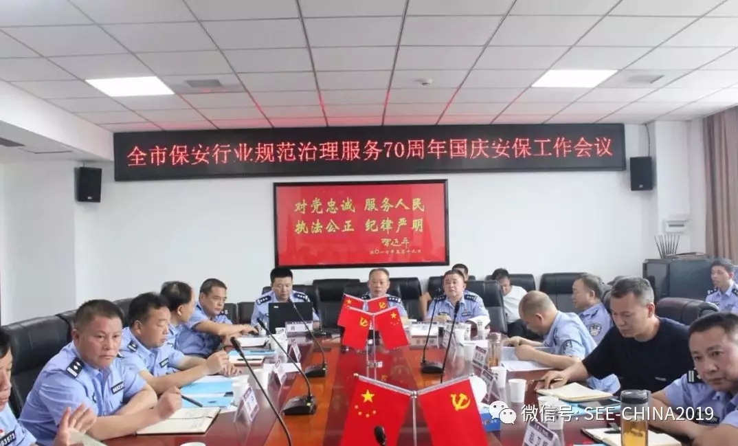 會(huì)上,邵陽市公安局治安支隊(duì)保安大隊(duì)大隊(duì)長肖勇首先傳達(dá)了全省保安業(yè)務(wù)培訓(xùn)會(huì)議和省廳征求《保安服務(wù)管理?xiàng)l例》修改意見座談會(huì)精神,對(duì)分層分步推進(jìn)全市保安行業(yè)規(guī)范治理服務(wù)70周年國慶安保工作進(jìn)行了具體部署。支隊(duì)副職就各自分管的治安績效評(píng)估工作予以了講評(píng),對(duì)下半年工作進(jìn)行了安排??h市區(qū)治安大隊(duì)就保安行業(yè)規(guī)范治理工作開展和治安工作達(dá)標(biāo)逐個(gè)發(fā)了言。