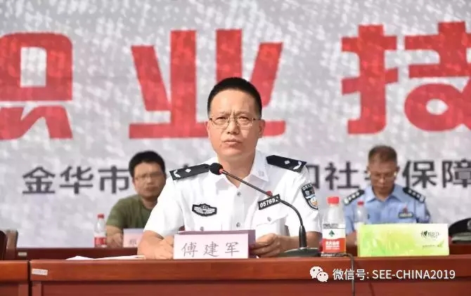 浙江省公安廳治安監(jiān)督管理總隊(duì)副總隊(duì)長(zhǎng)朱健輝,金華市公安局黨委委員、副局長(zhǎng)傅建軍,金華市人力資源和社會(huì)保障局黨組成員邵森寅出席開(kāi)幕式并講話。金華市總工會(huì)副主席張永積出席開(kāi)幕式。開(kāi)幕式上全體保安員進(jìn)行“保安勇?lián)?dāng)·平安迎大慶”集體宣誓。