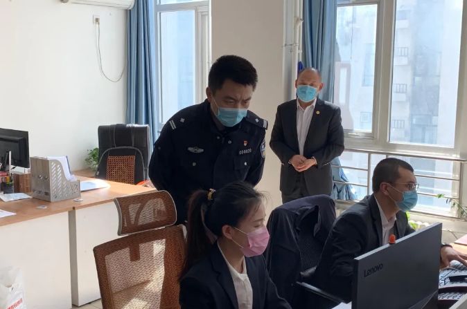 2020年3月19日,北京市公安局治安管理總隊保安管理支隊副支隊長任鵬、警官陳剛,大興區(qū)公安分局保安管理中隊中隊長關景泰,蒞臨中軍軍弘集團檢查指導新冠肺炎疫情防控和“清網(wǎng)治違”專項活動工作情況。
