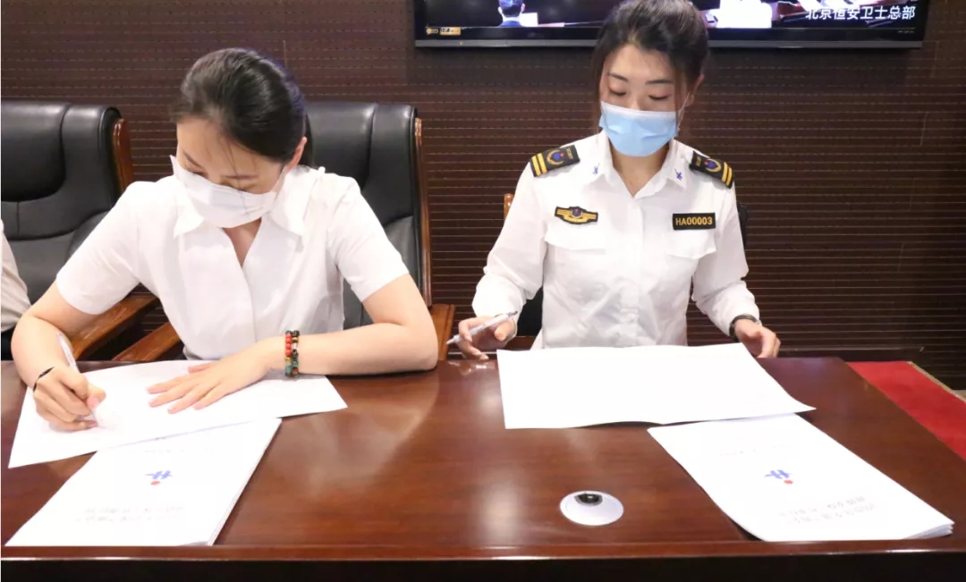 會(huì)議期間,恒安衛(wèi)士副總經(jīng)理郭艷茹與北京地鐵1、2號(hào)線項(xiàng)目經(jīng)理張麗紅、張二偉,現(xiàn)場(chǎng)簽訂《2020年全國“兩會(huì)”地鐵安保工作責(zé)任書》簽訂完畢,董事長現(xiàn)場(chǎng)宣讀《責(zé)任書》相關(guān)工作部署及要求如下: