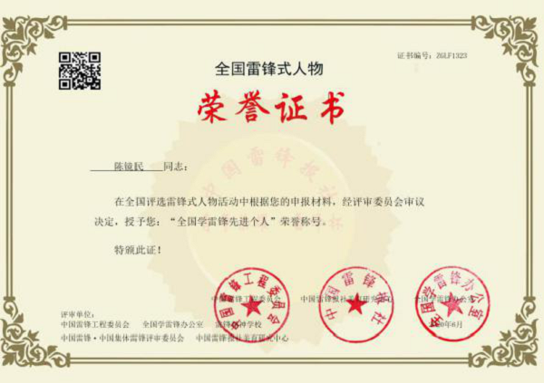 近期,江蘇天名保安服務(wù)有限公司董事長陳鏡民被中國雷鋒工程委員會、中國雷鋒報社、全國學(xué)雷鋒辦公室、中國雷鋒報社美育研究中心、中國雷鋒·中國集體雷鋒評審委員會評審授予“全國學(xué)雷鋒先進個人”榮譽稱號。多年來,陳鏡民帶領(lǐng)公司不斷創(chuàng)新發(fā)展,積極投身志愿服務(wù),熱心參與社會公益,特別是前期主動通過武漢紅十字會向雷神山醫(yī)院捐贈物資,助力疫情防控工作。