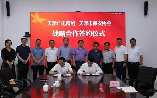天津市保安協(xié)會會長李蔚與天津廣播電視網(wǎng)絡(luò)有限公司總經(jīng)理李文利共同簽署戰(zhàn)略合作協(xié)議,共同開展天津市智慧平安社區(qū)及家庭安防項目建設(shè)和運營服務(wù)合作,標志著協(xié)會與天津廣播電視網(wǎng)絡(luò)有限公司深層次合作的開端,提升保安服務(wù)企業(yè)安防、技防水平,更好的協(xié)助公安機關(guān)做好社會治安管理和社會治安防控工作,為推動“智慧天津”、“平安天津”發(fā)展建設(shè)助力。