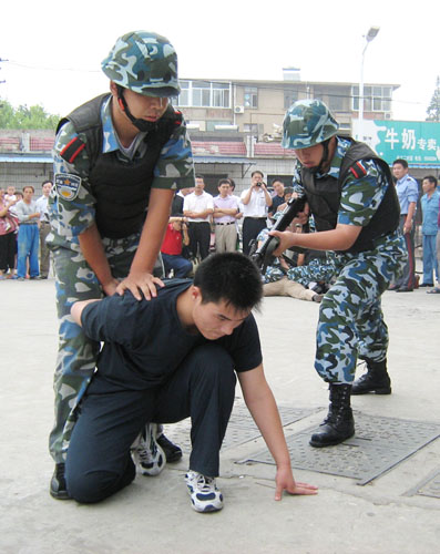 據(jù)了解,值此奧運會開幕之前,公安、保安、銀行聯(lián)合開展此次模擬演習(xí),旨在檢閱和提高銀行業(yè)健全的應(yīng)急預(yù)案機制、暢通的通訊設(shè)備、員工的警惕性和安全防范意識;錘煉保安武裝押運人員在執(zhí)行任務(wù)的運行過程中對可能遭遇的暴力搶劫、搶奪及事態(tài)突變時的綜合防暴防搶劫應(yīng)變處置能力、快速出擊制服或擊斃歹徒等目的。同時,也為我市保安武裝押運工作今后在押運、守護等處置各類突發(fā)性事件中積累了寶貴的實戰(zhàn)經(jīng)驗。