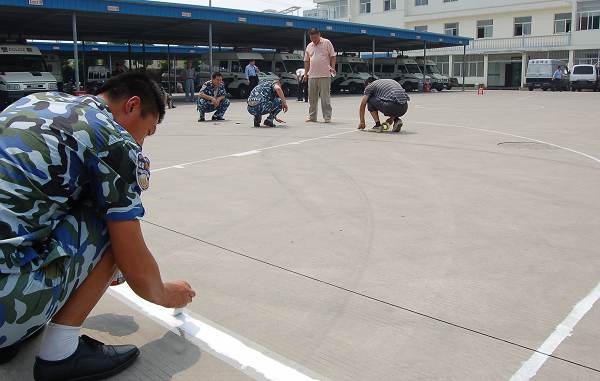 為進(jìn)一步豐富隊(duì)員的業(yè)余文化生活,公司在押運(yùn)停車場劃出一塊空地建設(shè)籃球場,隊(duì)員自告奮勇地主動(dòng)來場地一起劃線。
