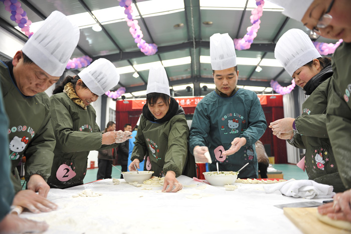 在煮餃子時候,每組又推選出一名女員工,參加“最佳能手”獎的比拼。只見在裁判規(guī)定的十分鐘內(nèi),四名女員工熟練的將刀工、手法、以及包餃子的技巧一一展現(xiàn),讓大家一飽眼福。