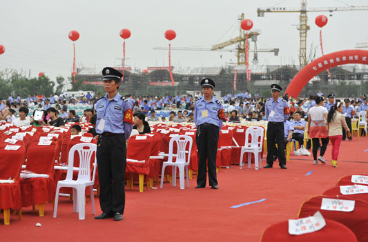 2012年6月16日晚,位于清河新區(qū)七星島娛樂會所廣場彩旗飄揚,歌聲環(huán)繞。由著名歌手齊秦、楊鈺瑩、張鎬哲、愛戴、孫浩、張也、黑鴨子組合等演藝明星同臺獻藝。為淮安觀眾奉獻一場精彩紛呈的文藝大餐。受主辦方邀請,淮安保安人防中心派出200名優(yōu)秀保安員參加了晚會現(xiàn)場的部分安保任務(wù)。