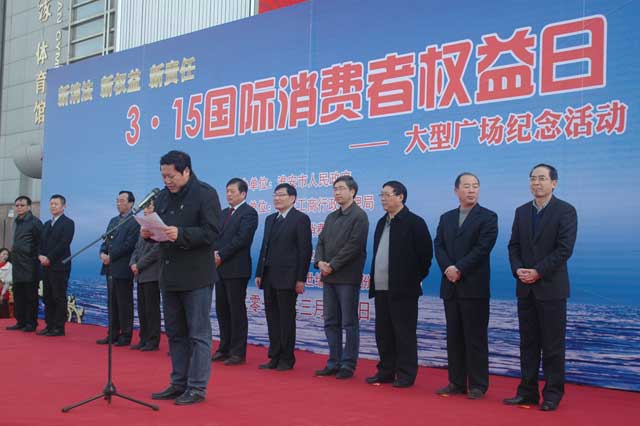 本報訊 3月15日上午9時,“3·15”國際消費(fèi)者權(quán)益日大型廣場紀(jì)念活動在淮安市體育館廣場舉行。