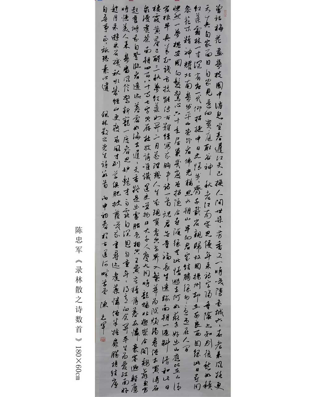 近日,由文化部、陜西省人民政府主辦的第十一屆中國(guó)藝術(shù)節(jié)書(shū)法篆刻作品展覽參展作者名單揭曉,經(jīng)過(guò)初評(píng)和終評(píng),總公司陳忠軍書(shū)法作品《錄林散之先生詩(shī)數(shù)首》入選該展覽。