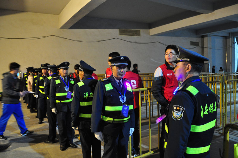 為做好安保工作,11月2日上午,人防中心專門組織參加臨沂安保人員進行專項培訓(xùn)。3日上午7:00集合出發(fā),提前到達臨沂大學(xué),按照承辦方要求,現(xiàn)場搭建300米防爆墻,10個預(yù)檢票口通道,承擔(dān)了25000名觀眾入場的安檢、檢票通道的秩序維護等安保任務(wù)。