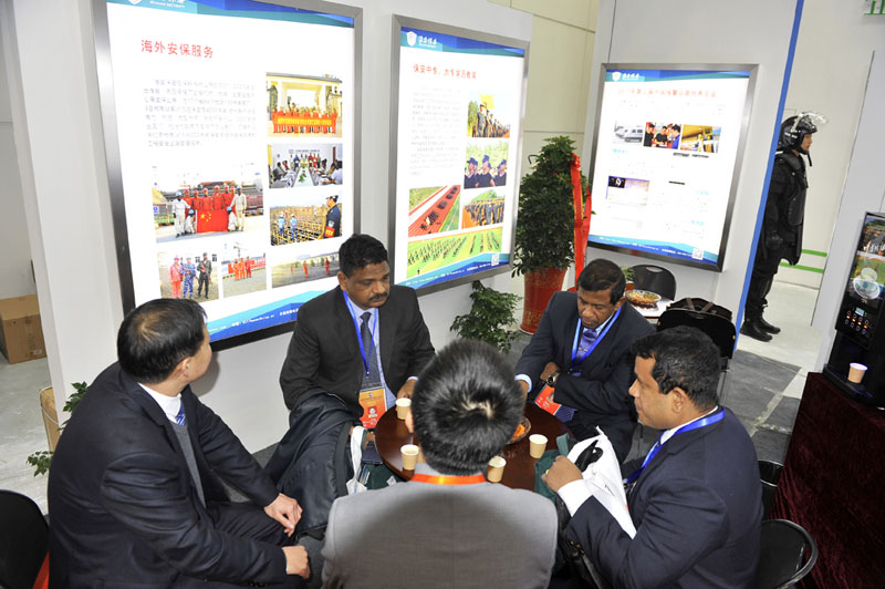 2017年12月11日,第三屆“連云港論壇”警用裝備和公共安全產(chǎn)品博覽會現(xiàn)場,淮安保安展臺吸引很多中外嘉賓駐足參觀,工作人員向嘉賓一一介紹公司展示的業(yè)務(wù)和項目情況。