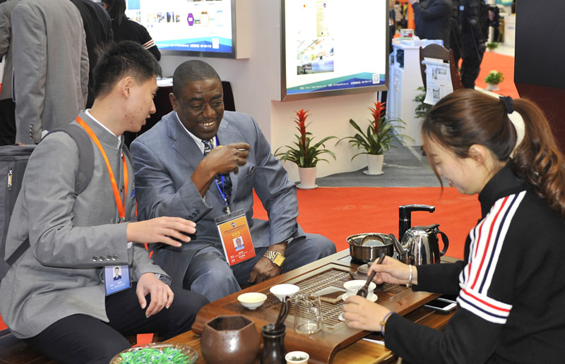 婁伯翱總經(jīng)理在公司展臺向國外嘉賓介紹海外服務(wù)情況