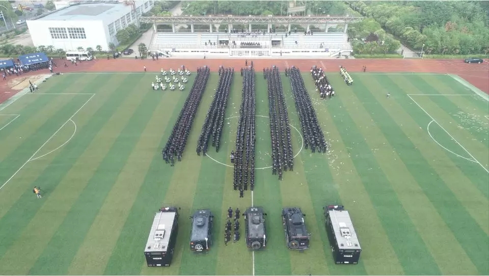 到達(dá)指定區(qū)域后,無(wú)人機(jī)操控員立即進(jìn)行了分工,并對(duì)設(shè)備進(jìn)行連接調(diào)試。早上5時(shí),所有參演人員按照指揮部指令到達(dá)指定位置。7點(diǎn)20分,蘇北跨區(qū)域拉練正式開始。負(fù)責(zé)空中航拍的無(wú)人機(jī)操控員迅速將演練現(xiàn)場(chǎng)的實(shí)時(shí)畫面?zhèn)鬏斨连F(xiàn)場(chǎng)指揮部及省公安廳;演練過(guò)程中,發(fā)現(xiàn)“上訪人員”用民用無(wú)人機(jī)對(duì)現(xiàn)場(chǎng)進(jìn)行拍攝和干擾,無(wú)人機(jī)反制小組迅速做出反應(yīng),操控?zé)o人機(jī)反制設(shè)備對(duì)民用無(wú)人機(jī)進(jìn)行管制和驅(qū)離;隨著“上訪人員”人數(shù)的逐漸增多,現(xiàn)場(chǎng)指揮員要求飛控隊(duì)操控?zé)o人機(jī)載喇叭進(jìn)行高空喊話和宣傳相關(guān)的法律法規(guī),同時(shí)對(duì)“上訪群眾”進(jìn)行疏導(dǎo);由于現(xiàn)場(chǎng)部分“上訪人員”情緒過(guò)激,出現(xiàn)燒、搶、打、砸等惡劣狀況發(fā)生,態(tài)勢(shì)愈發(fā)嚴(yán)重,指揮部立即下達(dá)指令,無(wú)人機(jī)載著煙霧彈、催淚彈等升空,對(duì)人員密集的區(qū)域進(jìn)行投彈,成功驅(qū)散了現(xiàn)場(chǎng)的打砸人員。