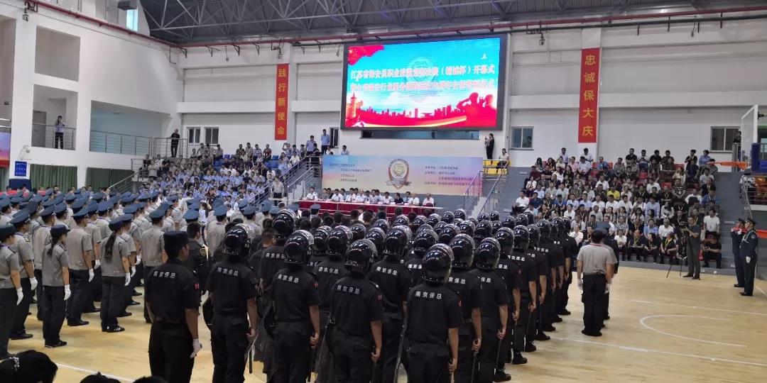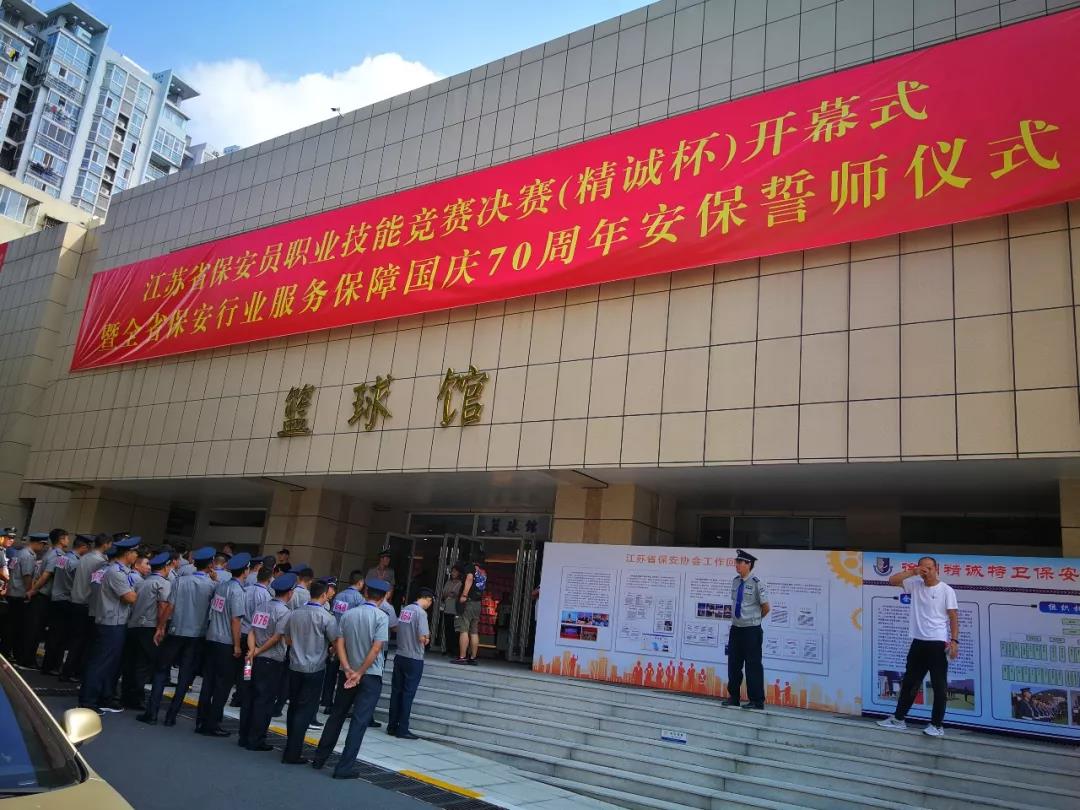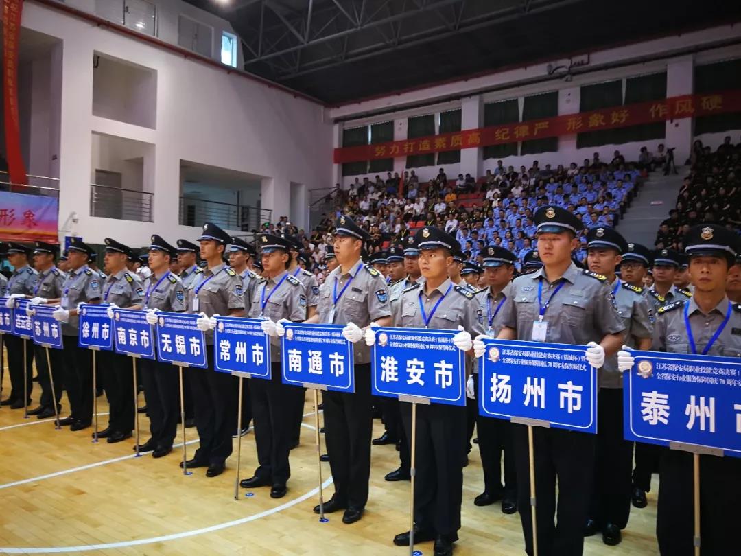 為更好的履行“保安勇?lián)?dāng),忠誠保大慶”主題活動,有力推進和提升全省保安服務(wù)行業(yè)的人才隊伍建設(shè)、綜合業(yè)務(wù)技能和履職能力,更好地服務(wù)新中國成立70周年大慶安?;顒?,9月16日下午3點30分,由省公安廳,省人社廳,省總工會,共青團江蘇省委主辦,江蘇省保安協(xié)會承辦的“江蘇省保安員職業(yè)技能競賽決賽開幕式暨全省保安行業(yè)服務(wù)保障國慶70周年安保誓師大會”在江蘇省司法警官高等職業(yè)學(xué)校(鎮(zhèn)江)舉行。全省13個地級市13支代表隊117名保安員參加了決賽。開幕式由江蘇省保安協(xié)會會長秦軍主持,公安部三局顧巖處長、中保協(xié)第一副會長劉紹武、江蘇省公安廳黨委副書記副廳長尚建榮、省人社廳副廳長朱從良、省總工會副主席井良強、團省委副書記潘文卿、江蘇省監(jiān)獄管理局政治部主任袁誠、鎮(zhèn)江市副市長公安局長陳金觀等領(lǐng)導(dǎo)出席開幕式并講話。部分省、自治區(qū)、直轄市保安協(xié)會、公安機關(guān)分管領(lǐng)導(dǎo)和保安公司負責(zé)人參加安保誓師大會。淮安市公安局副局長唐衛(wèi)東、治安支隊政委顏志龍、巡特警支隊支隊長王彤、保安監(jiān)管大隊大隊長呂述山、淮安市保安服務(wù)總公司總經(jīng)理趙愛忠等領(lǐng)導(dǎo)參加了開幕儀式。開幕式上,全體保安人員,進行了“保安勇?lián)?dāng),忠誠保大慶”集體宣誓。